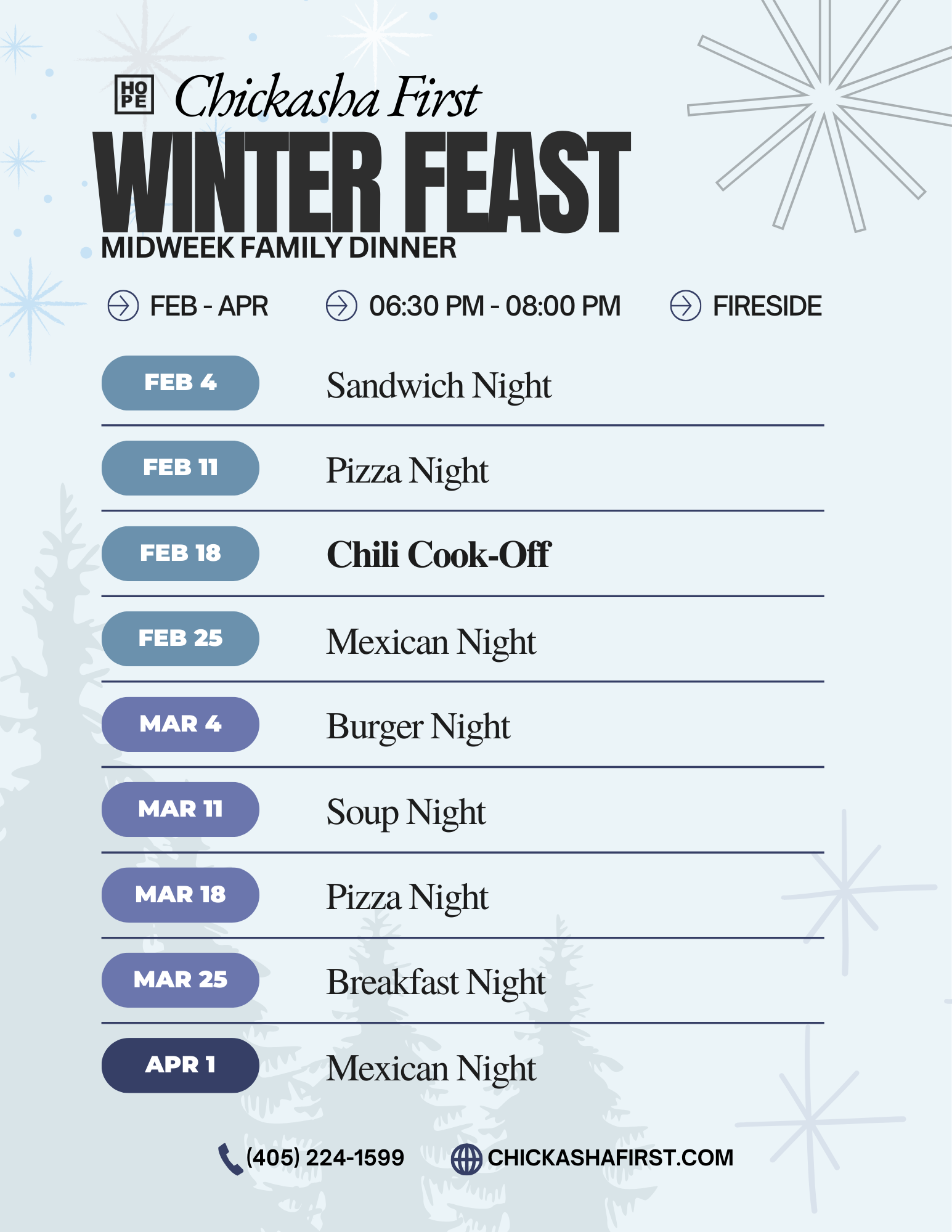 Join us for Fall Feast at Chickasha First—Wednesday nights made better! Come enjoy a delicious family dinner and meaningful community as we dive into God’s Word together through group Bible study. It’s food, fellowship, and faith all in one night!